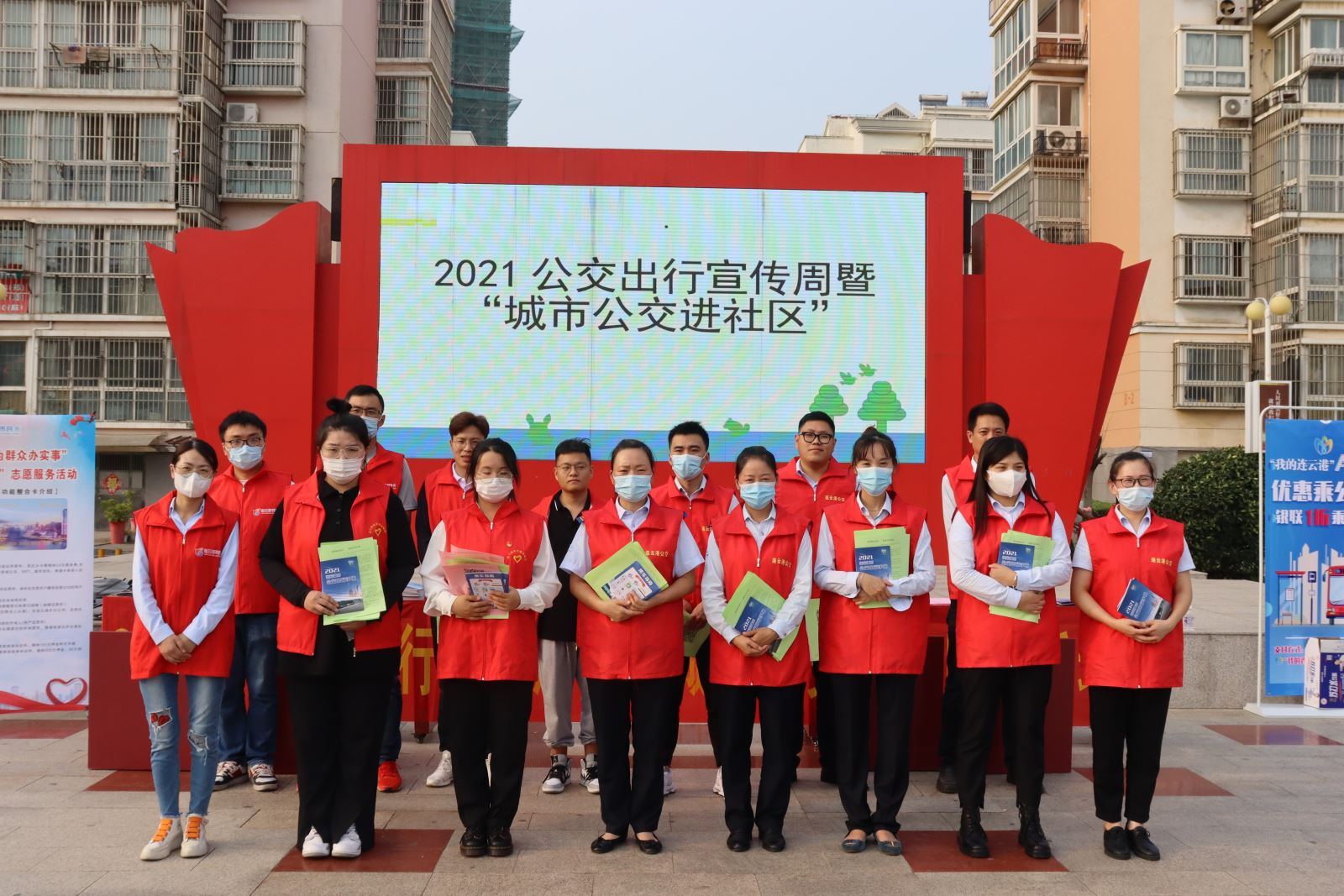 本次活動地點(diǎn)設(shè)在海州區(qū)新海花園社區(qū),活動現(xiàn)場擺放桌椅、懸掛主題活動宣傳橫幅,15名志愿服務(wù)者向社區(qū)居民發(fā)放公交出行宣傳周活動倡議書、2021年公交出行手冊200余份、公交滿意度調(diào)查問卷46份。