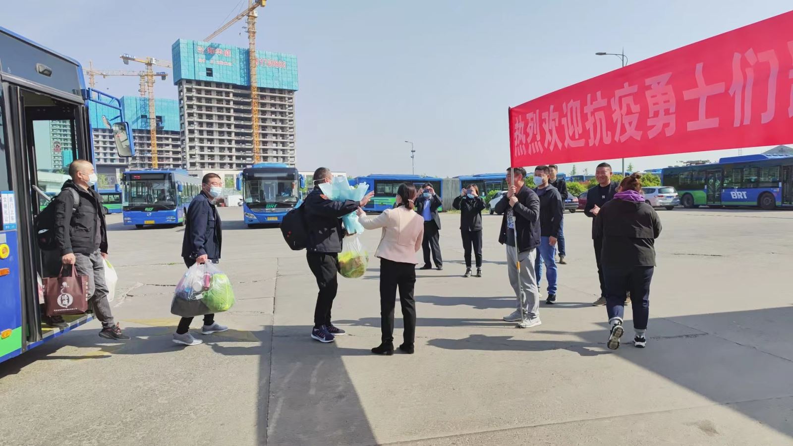 4月17日早上8點(diǎn)53分,公交集團(tuán)快速公交事業(yè)部西城停車(chē)場(chǎng)內(nèi)熱鬧非凡,隨著一陣熱烈的掌聲迎來(lái)了參加港城疫情轉(zhuǎn)運(yùn)勇士們的凱旋。