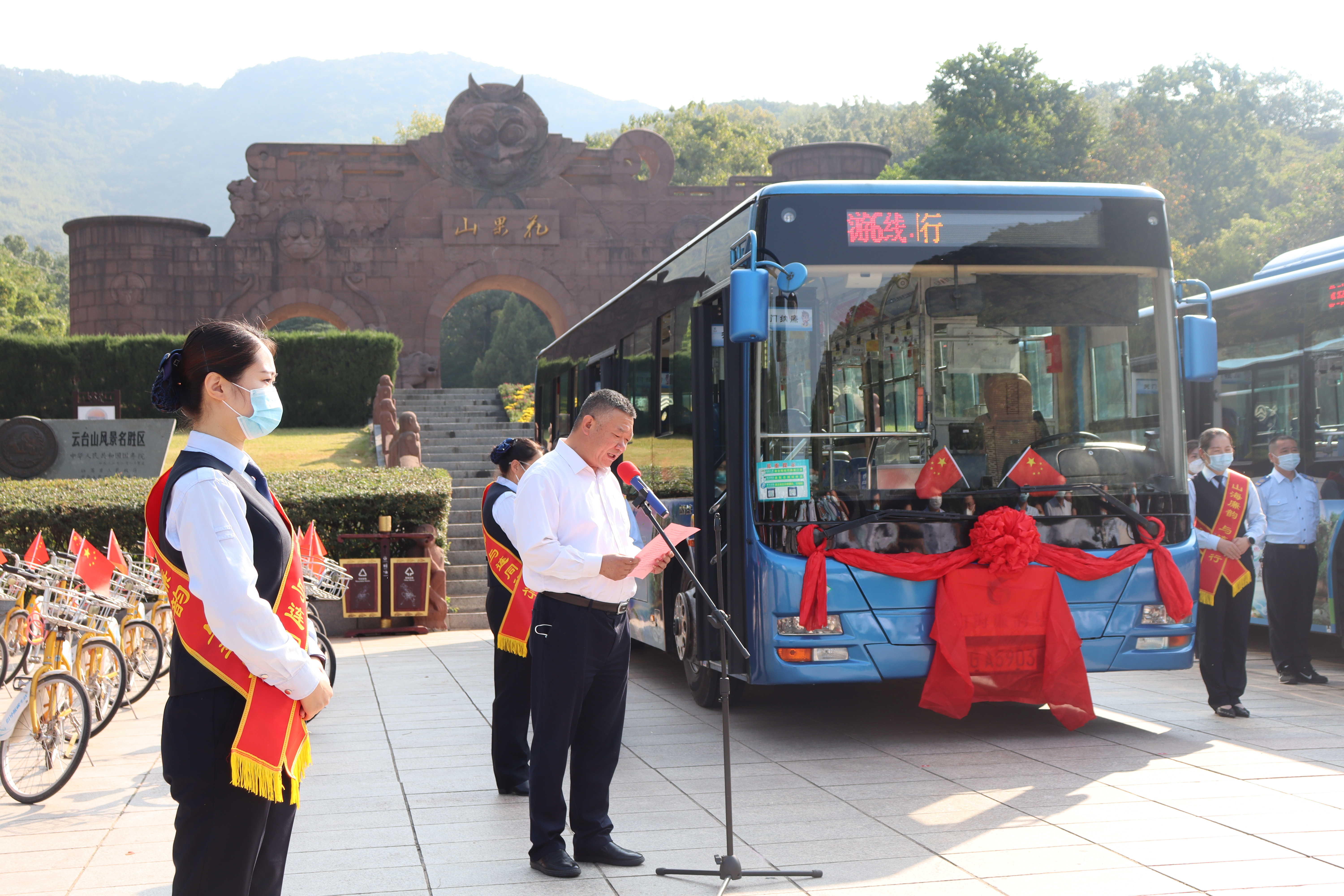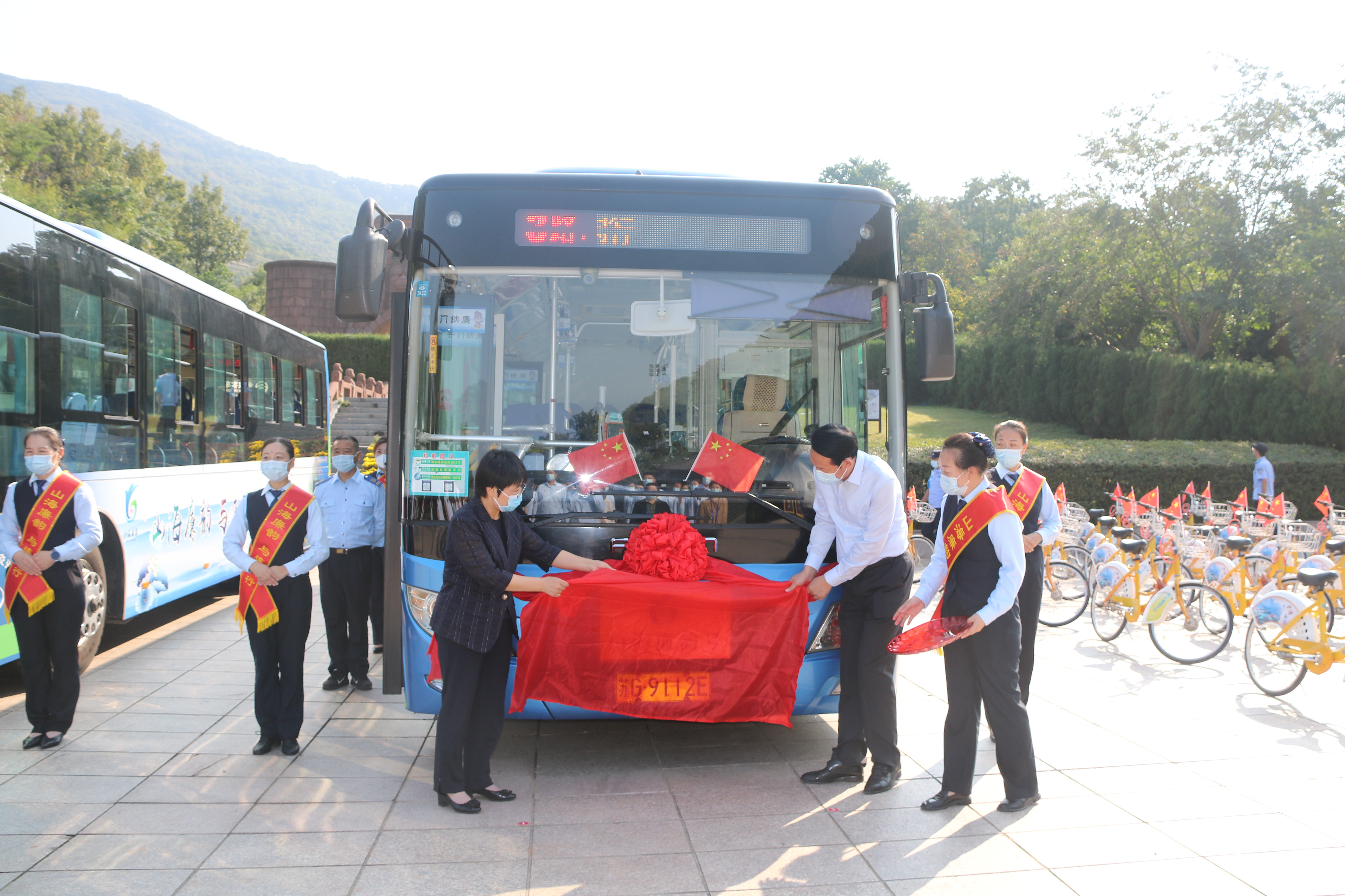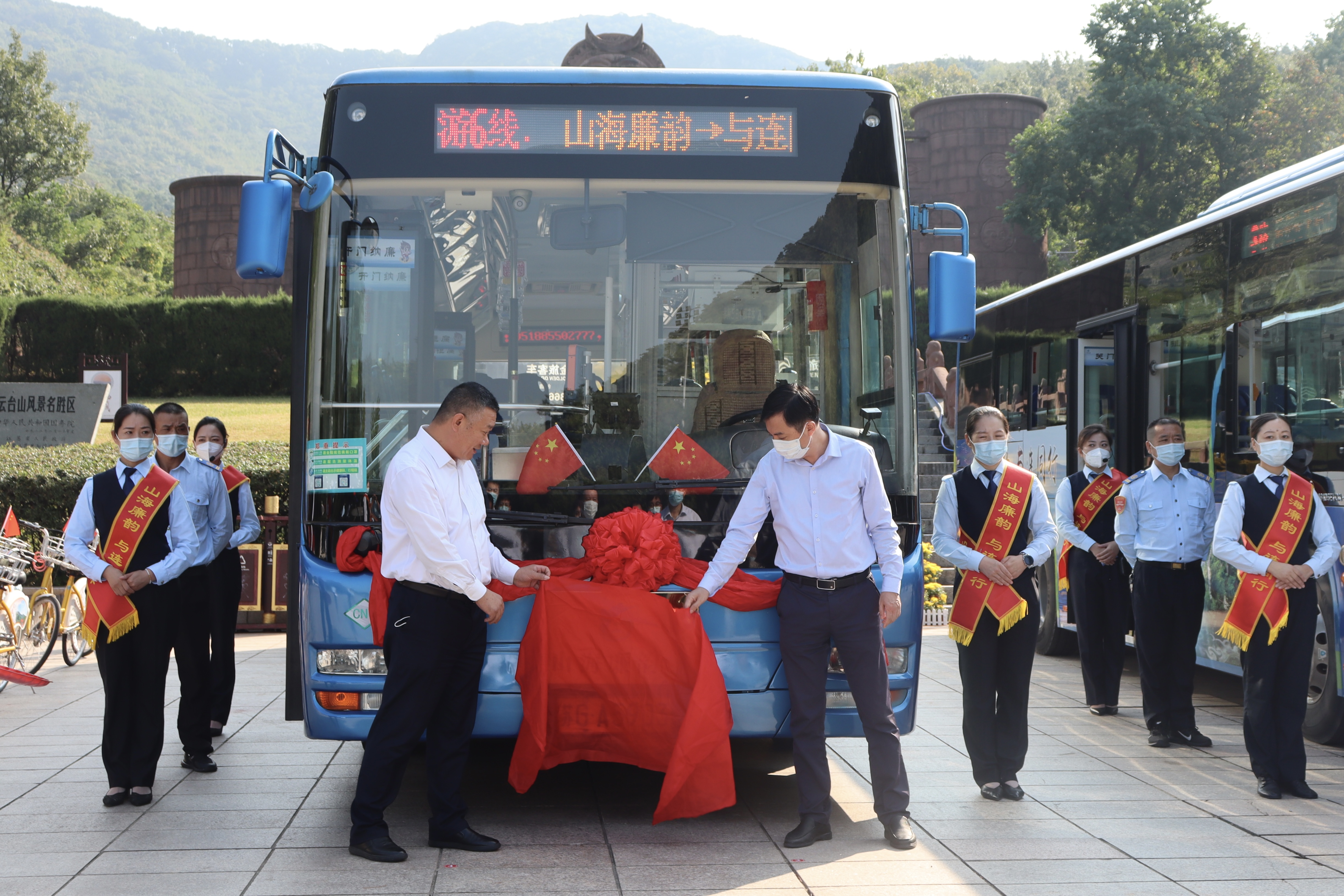 啟動儀式現場,在統一的鳴笛后,3路、游6路兩臺“山海廉韻號”廉潔示范車以花果山山門為首發(fā)站,載著黨員干部代表前往參觀星海湖清廉園等紀法教育基地,沿途還參觀了市政府公交站的廉潔公益廣告等。