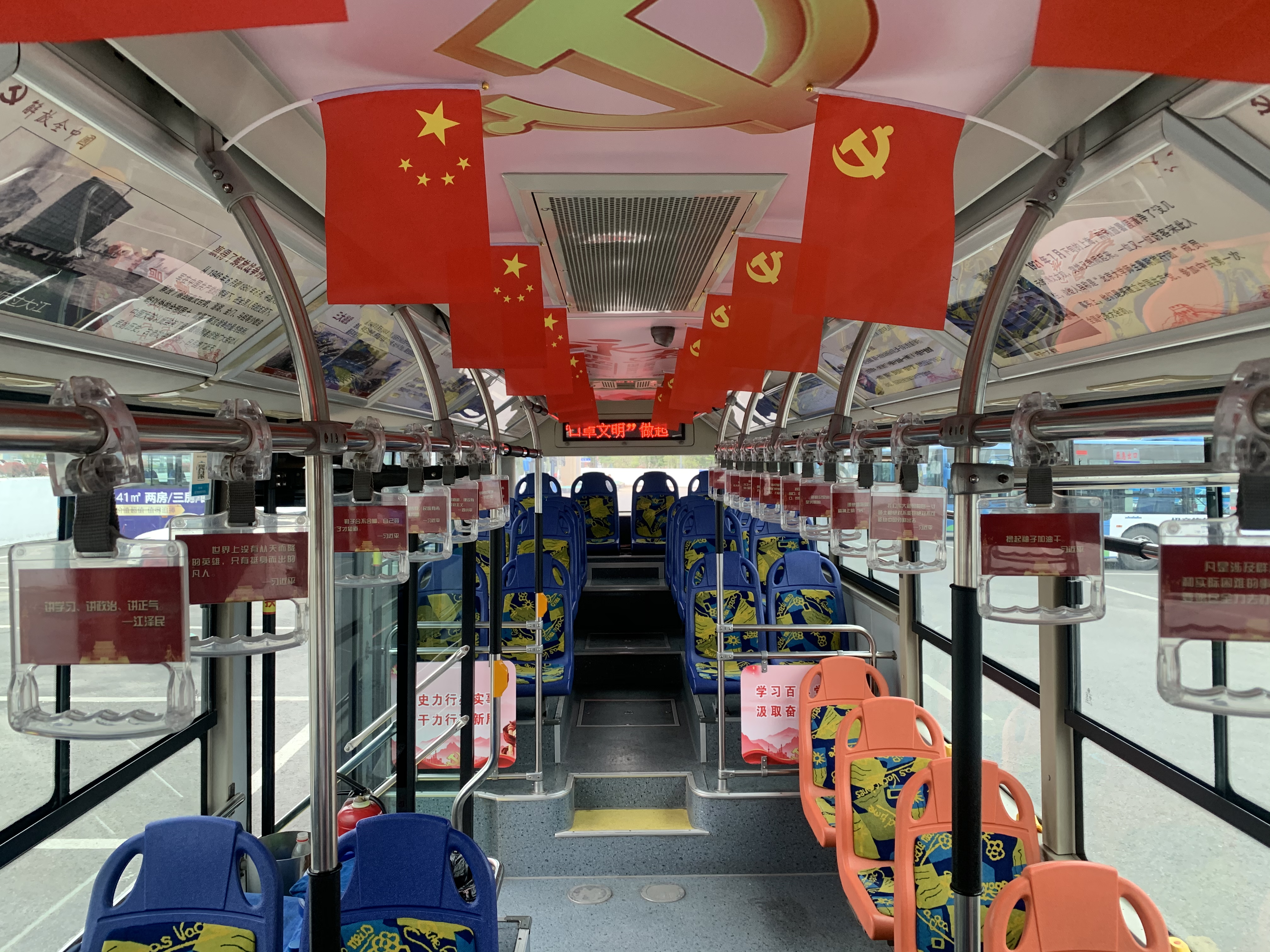 在暨2021年建黨百年“紅色黨史”主題車廂的基礎(chǔ)上,今年黨支部緊緊圍繞黨的二十大為宣傳主線,并充分結(jié)合當(dāng)前工作實(shí)際,在持續(xù)深化黨史學(xué)習(xí)教育的同時(shí),以公交20路為紅色宣傳載體再發(fā)力,分別對車身廣告及車內(nèi)氛圍渲染上進(jìn)行了更新升級,力爭“一支一特色”的紅色專列再提升。