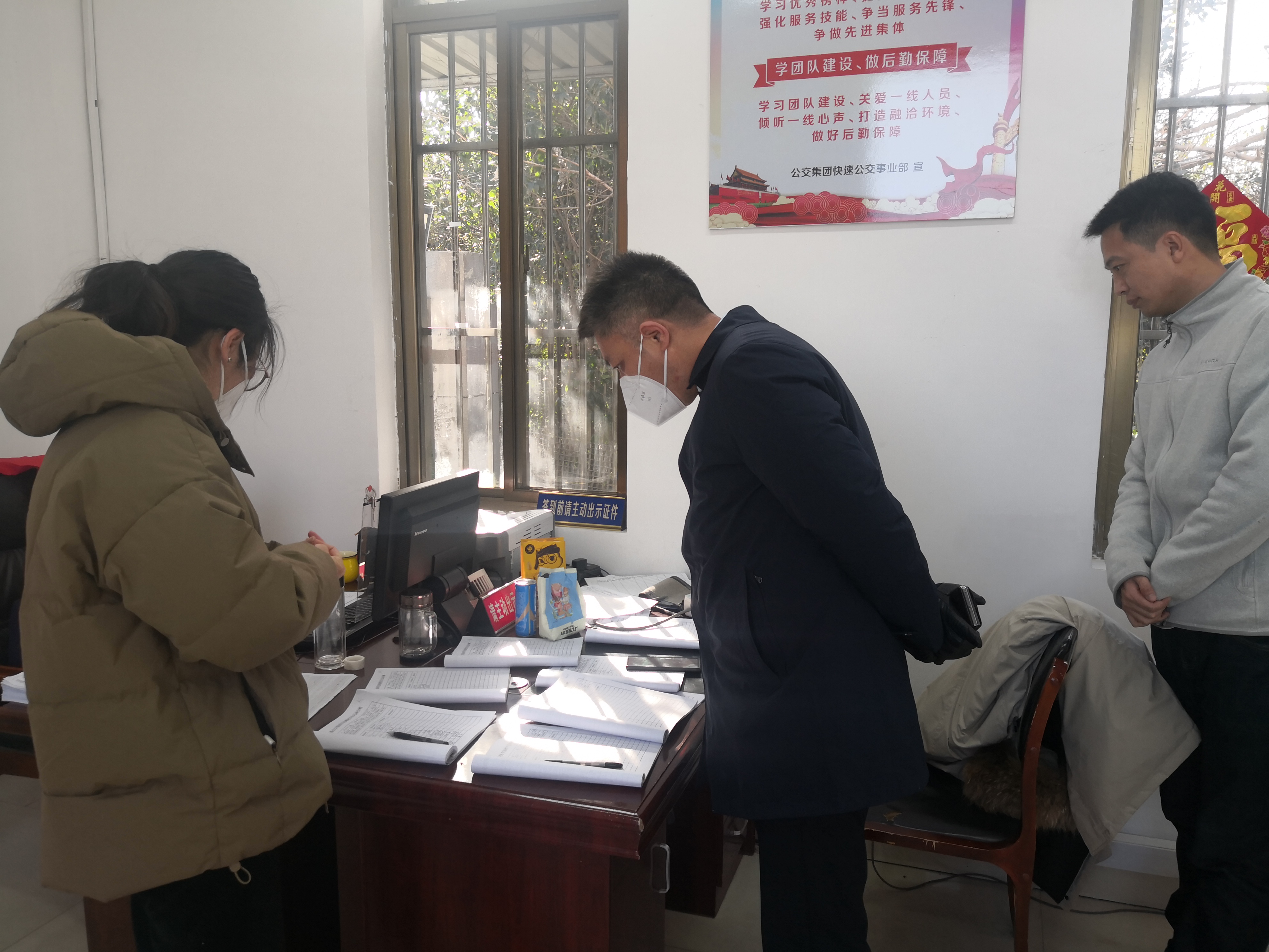 本次檢查紀(jì)委書(shū)記李錦洹帶領(lǐng)紀(jì)委工作人員采取“四不兩直”方式隨機(jī)督查了事業(yè)部、場(chǎng)站、BRT站臺(tái)、修理廠和值班站點(diǎn)等共13個(gè)地點(diǎn)。檢查內(nèi)容以聚焦集團(tuán)主責(zé)主業(yè)、緊盯重點(diǎn)時(shí)段、重點(diǎn)環(huán)節(jié)為核心,包含值班值守、公務(wù)車使用、安全管理、服務(wù)保障等多個(gè)方面,確保節(jié)日期間也做到信息聯(lián)絡(luò)暢通、指令傳達(dá)及時(shí)、反應(yīng)迅速到位,促進(jìn)公交運(yùn)營(yíng)更加安全、暢通、有序。在檢查過(guò)程中紀(jì)委工作人員也上路對(duì)BRT及常規(guī)公交不同線路客流分布情況進(jìn)行關(guān)注和反饋,對(duì)節(jié)日期間嚴(yán)寒天氣下站點(diǎn)值班的工作人員表示關(guān)心和敬意。