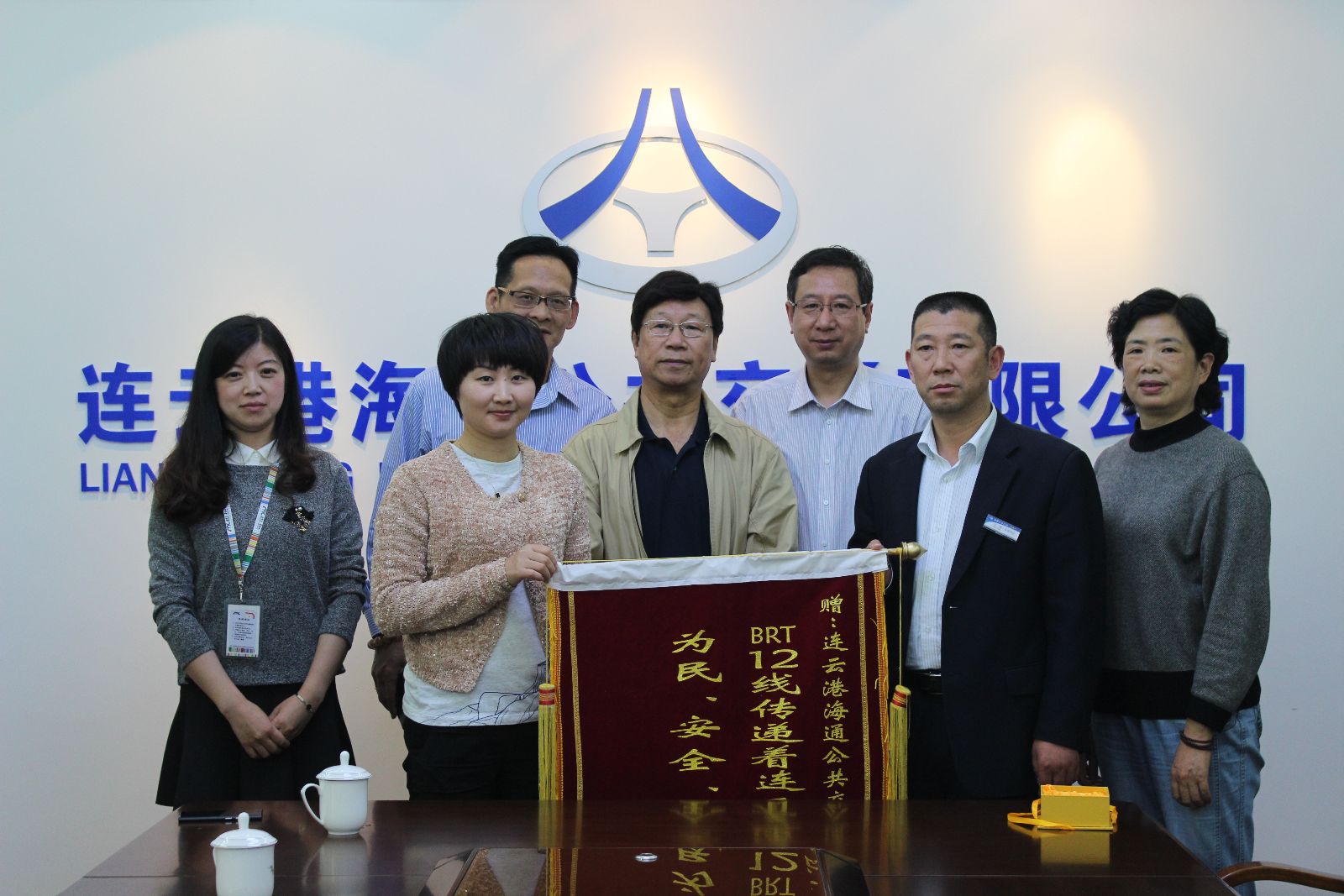 5月6日,連云港華東國(guó)際商貿(mào)城常務(wù)副總裁任家齊一行4人將一面印有“B12線傳遞著連云港海通公交的為民、安全、優(yōu)質(zhì)和溫暖”字樣的錦旗送到海通公共交通有限公司,衷心感謝海通公交兩年來(lái)在促進(jìn)華東城發(fā)展給予的大力支持和幫助。