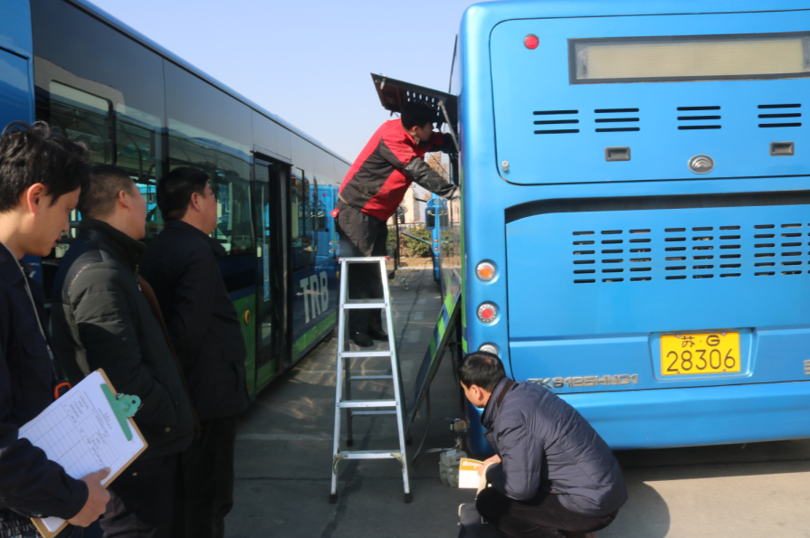 要求檢測單位嚴格按照氣瓶的安全標準,對燃氣車輛車載氣瓶的安全閥、壓力表、管路閥門等配件設(shè)施進行檢測,并對檢測中存在的問題進行現(xiàn)場修復整改,排除隱患,杜絕氣瓶帶病使用。公司安全部將會同機務(wù)部不定期到公交始發(fā)站點檢查氣瓶管路是否處于良好狀態(tài),保證公司燃氣車輛安全運營。