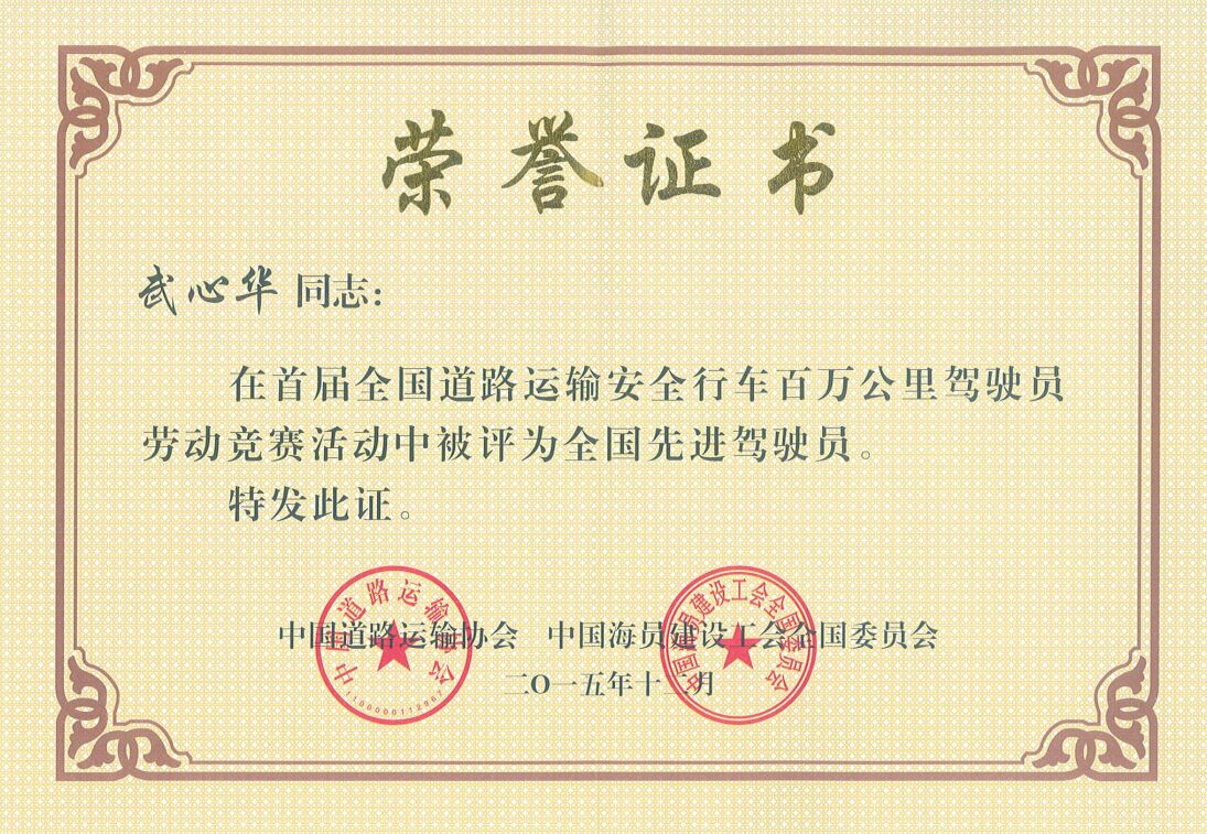 近日,海通公交公司沈濤、武心華2名駕駛員被全國(guó)道路運(yùn)輸安全行車百萬(wàn)公里駕駛員勞動(dòng)競(jìng)賽組委授予“全國(guó)先進(jìn)駕駛員”榮譽(yù)稱號(hào)。目前,公司已有26名安全行車達(dá)百萬(wàn)公里駕駛員,2016年公司將一如既往的加強(qiáng)安全生產(chǎn)工作,開展“強(qiáng)化基層、基礎(chǔ)、基本功”的建設(shè),為全市人民提供“安全、文明、優(yōu)質(zhì)”的出行環(huán)境。