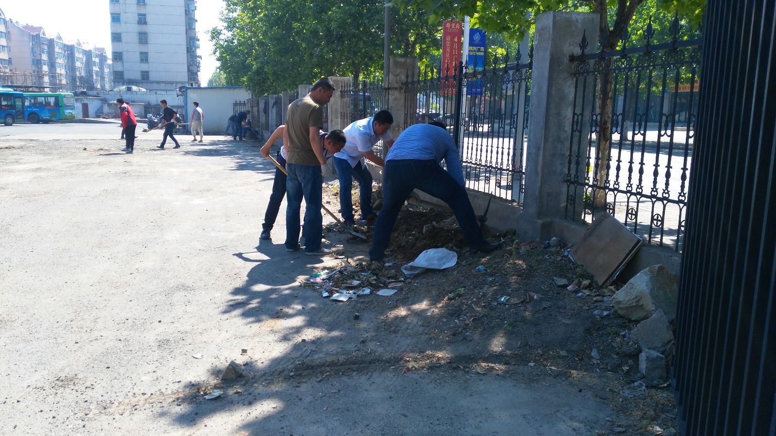活動中,大家不顧“臟和累”,積極將場站四周堆放的泥土、沙石中的垃圾清除,又將泥土和沙石填置到場站的低洼水坑中,同時將場站內(nèi)各種垃圾進行撿拾和衛(wèi)生死角進行徹底清理。
