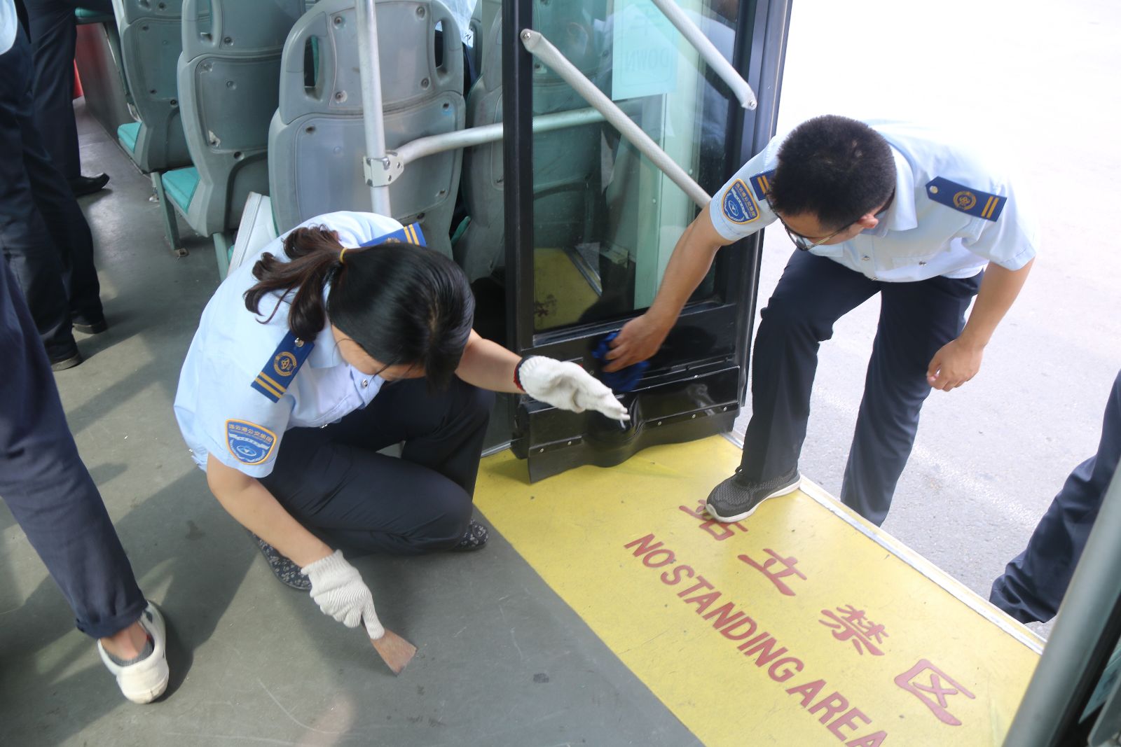 公交快速公司黨支部根據(jù)上級(jí)黨委“關(guān)于組織開(kāi)展紀(jì)念建黨96周年系列活動(dòng)”的文件要求。為增強(qiáng)黨員服務(wù)意識(shí)、改進(jìn)服務(wù)作風(fēng)、提高服務(wù)水平,踐行黨員“微服務(wù)”。6月30日下午,公交快速公司黨支部組織20名黨員志愿者,在海州客運(yùn)站集中開(kāi)展B12線車(chē)車(chē)廂衛(wèi)生清掃清潔志愿服務(wù)活動(dòng),黨員們用海綿清洗裝飾板上的污垢,用鏟子鏟除車(chē)內(nèi)地板上的口香糖,擦洗車(chē)頂空調(diào)濾網(wǎng)處等等,不放過(guò)每一處衛(wèi)生死角,積極營(yíng)造真抓實(shí)干的良好氛圍。