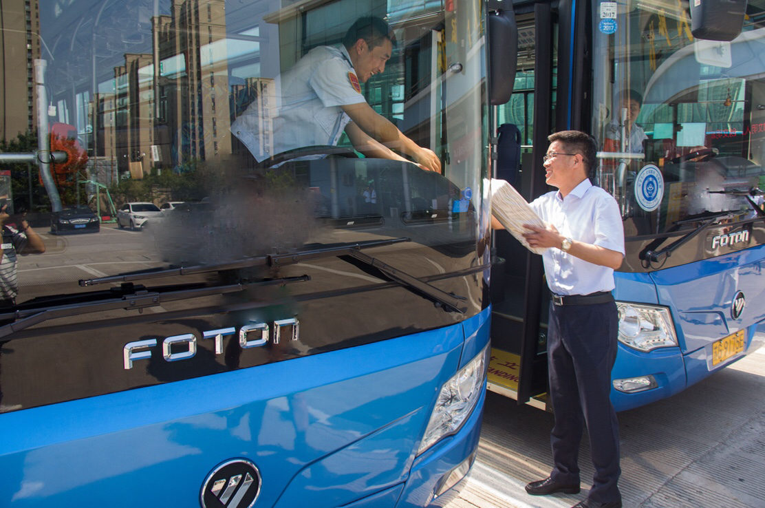 交控集團領(lǐng)導(dǎo)心系公交職工。7月20日上午,集團黨委書記、董事長劉永能,總經(jīng)理、黨委副書記、副董事長仲偉濤,工會主席王中永、工會副主席張曉紅帶領(lǐng)有關(guān)人員冒著高溫來到快速公交BRT站臺,親切看望慰問了高溫下堅守崗位的公交站務(wù)員。