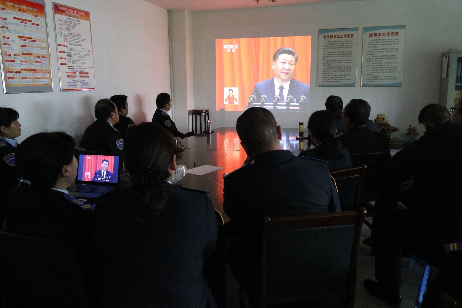 上午8時(shí)30分,公交集團(tuán)機(jī)關(guān)黨員干部早早就集中到會(huì)議室,提前做好收看準(zhǔn)備工作,全體黨員齊聚一堂認(rèn)真聆聽(tīng)習(xí)近平總書(shū)記代表第十八屆中央委員會(huì)向大會(huì)所作的報(bào)告。