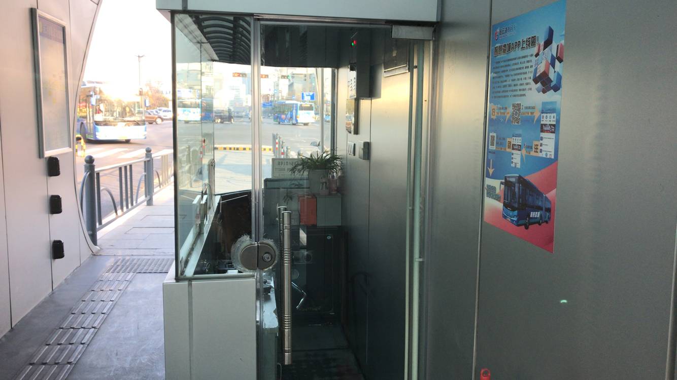 公交集團(tuán)快速公司統(tǒng)一安裝站臺(tái)票房門(mén)玻璃門(mén)條