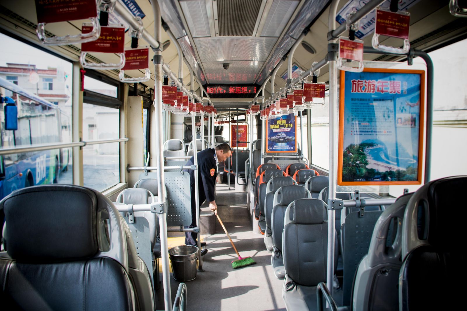 一趟線路跑完,將車(chē)輛外面的灰塵擦拭干凈,保證車(chē)廂內(nèi)外衛(wèi)生整潔;