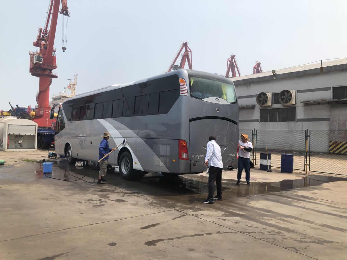 臺(tái)風(fēng)過(guò)后,港口地表溫度達(dá)50多度,公交集團(tuán)汽服公司因承接了宇通近100臺(tái)車(chē)輛的出口清洗檢驗(yàn)任務(wù),面對(duì)任務(wù)重、時(shí)間緊、標(biāo)準(zhǔn)高的出口要求,為了能按時(shí)保質(zhì)完成此項(xiàng)任務(wù),公交汽服的港口工作人員頂著高溫,穿戴整齊,服從指揮,按部就班的執(zhí)行清洗檢驗(yàn)工作,盡管汗珠浸濕了衣背,高溫天氣并不影響工作人員的工作熱情和工作態(tài)度。公司維修部的人員也在抓緊時(shí)間,緊鑼密鼓搶修出現(xiàn)問(wèn)題的公交車(chē)輛,汗水濕透了他們的衣裳,雖然辛苦,但看到公交車(chē)又能為乘客的出行提供便利,他們的心里別提有多開(kāi)心了。