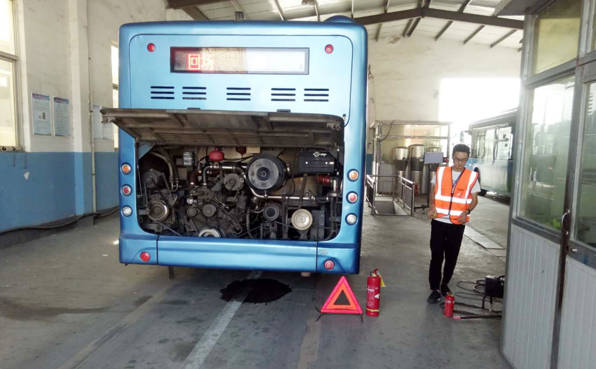本次年檢工作從8月初開始,共檢驗(yàn)61臺天燃?xì)廛囕v(其中包含18米海格車輛30臺、12米宇通車輛31臺)。主要檢測內(nèi)容有以下三項(xiàng):一是檢查發(fā)動機(jī)、地盤、車身及其附屬設(shè)備是否清潔、齊全、有效,漆面是否均勻美觀,與初檢是否相符。二是檢驗(yàn)車輛的制動性、轉(zhuǎn)向操作性、燈光、排氣及其它安全性能是否符合“機(jī)動車安全運(yùn)行技術(shù)條件”的要求。三是檢驗(yàn)車輛的三角牌、滅火器是否齊全有效,行駛證、號牌、發(fā)動機(jī)號及車架號的車輛檔案所有登記是否與車況相符,車輛是否辦理了審批和異動、變更手續(xù)等。