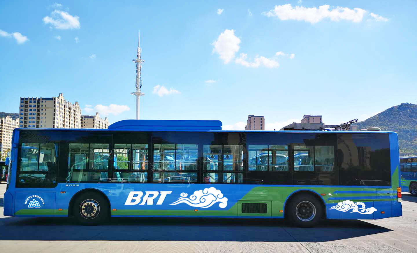 連云港公交車(chē)身整體為藍(lán)色,代表著大海和廣闊的天空,綠色造型代表海鷗,翱翔在藍(lán)天和大海之上;綠色凸顯清新和盎然生機(jī),也表達(dá)了綠色公交的發(fā)展理念。祥云是中國(guó)傳統(tǒng)的吉祥圖案。碧海藍(lán)天、海鷗祥云相得益彰,勾勒出一幅“海鷗飛處祥云追”的祥和畫(huà)卷。也體現(xiàn)出現(xiàn)代公共交通服務(wù)民生的和諧美好。