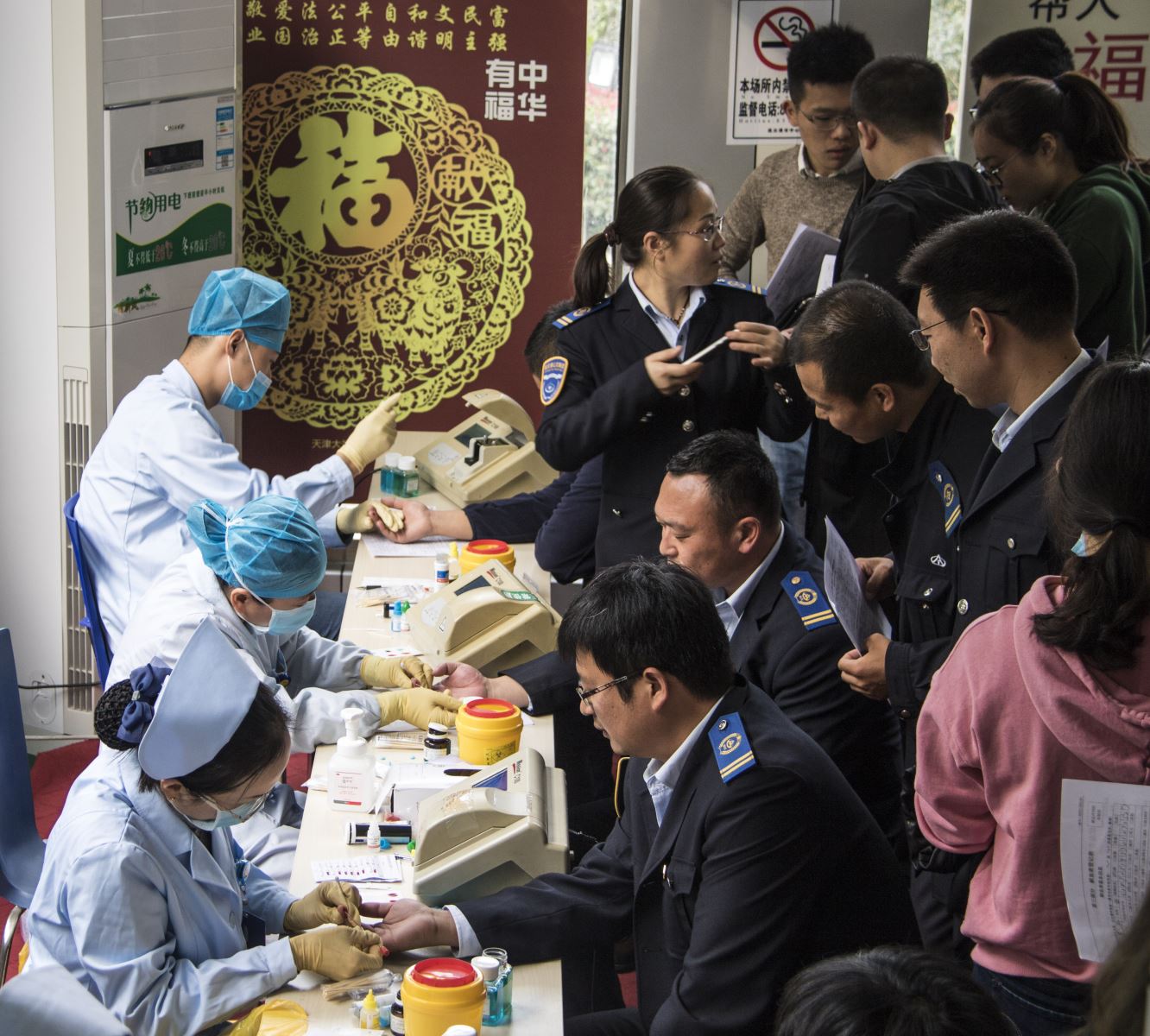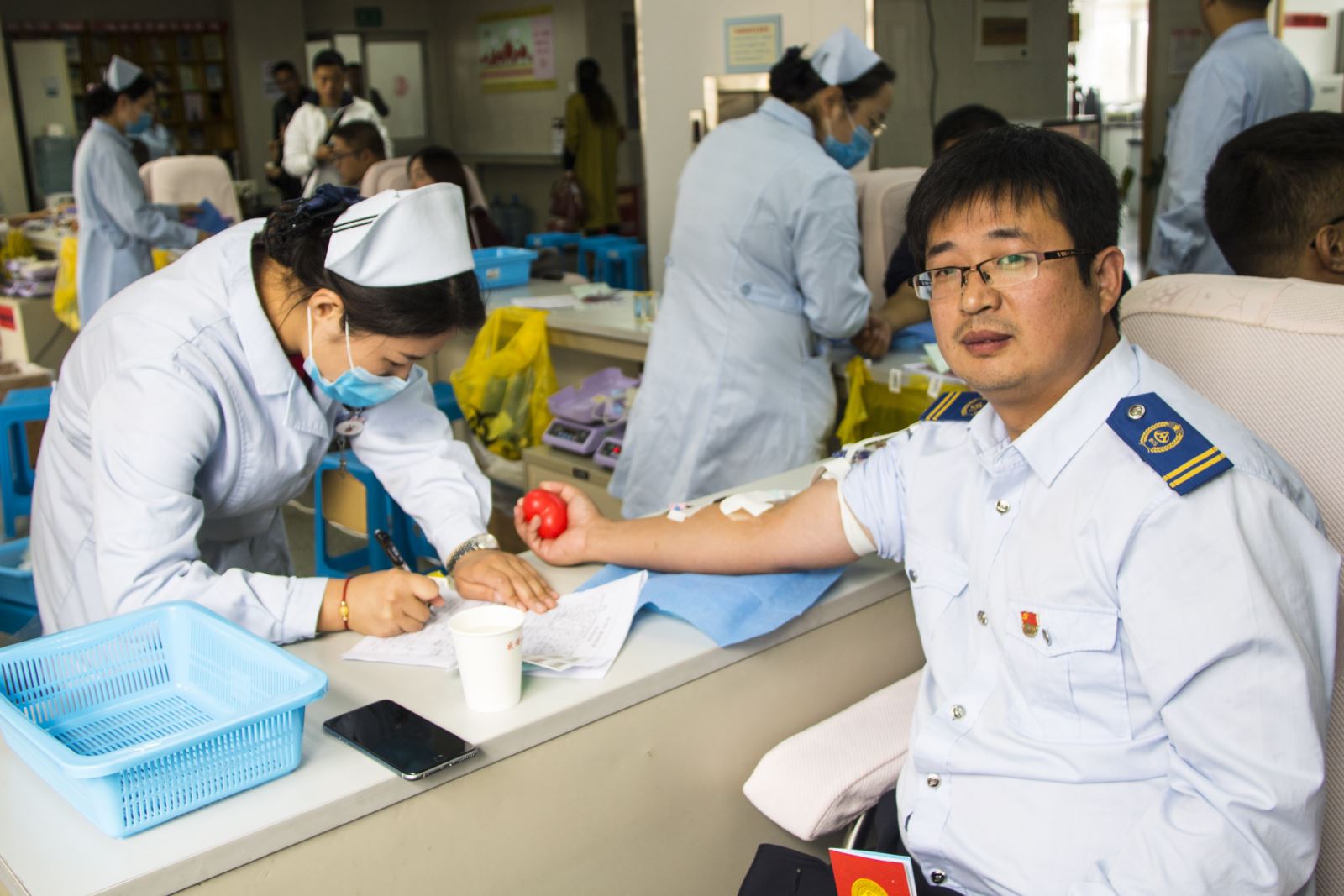 為組織好本次無償獻(xiàn)血活動(dòng),公交集團(tuán)認(rèn)真部署,提前謀劃,組織動(dòng)員廣大干部職工踴躍參與無償獻(xiàn)血活動(dòng)。在現(xiàn)場(chǎng),積極報(bào)名獻(xiàn)血的小伙伴們?cè)缭缇蛠淼街行难?,認(rèn)真填寫《義務(wù)獻(xiàn)血登記表》,并積極配合醫(yī)護(hù)人員完成量血壓、化驗(yàn)和抽血,為無償獻(xiàn)血活動(dòng)做好相關(guān)準(zhǔn)備。在獻(xiàn)血隊(duì)伍中,有著多次無償獻(xiàn)血的公交人,也有第一次參加獻(xiàn)血的志愿者,大家為無償獻(xiàn)血的愛心公益事業(yè)奉獻(xiàn)自己一份力量,傳遞著社會(huì)的正能量。