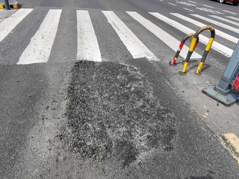 經(jīng)過(guò)夏季太陽(yáng)的高溫炙烤和雨水的浸泡,公交車行經(jīng)的瀝青路面的強(qiáng)度會(huì)降低,BRT站臺(tái)又是公交車剎車和起步比較集中的區(qū)域,在多方面的作用下,瀝青路面產(chǎn)生了起鼓現(xiàn)象,導(dǎo)致部分路面變形嚴(yán)重,路面起鼓的地方甚至高出路面十幾公分,容易剮蹭底盤、刮壞儲(chǔ)氣筒,導(dǎo)致車輛拋錨,對(duì)車輛運(yùn)行造成極大的安全隱患。
