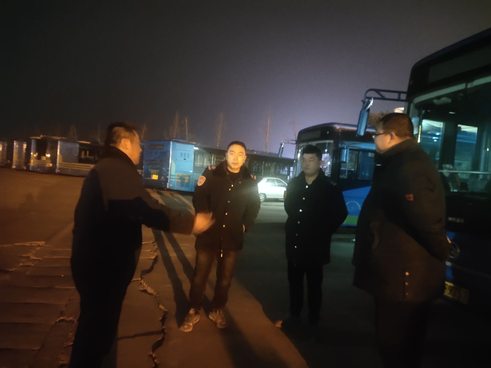 為應(yīng)對(duì)此次惡劣天氣,事業(yè)一部提前部署,積極應(yīng)對(duì),一是提前將所有車輛逐一上例保臺(tái)進(jìn)行例保檢查,特別對(duì)車輛排檔線、電池、燈光、雨刮器等進(jìn)行查看,確保遇惡劣天氣正常使用。二是12月28日上午召開領(lǐng)導(dǎo)班子、科室、分公司負(fù)責(zé)人惡劣天氣保障會(huì)議,會(huì)上對(duì)本次惡劣天氣做具體工作安排及做好應(yīng)急保障準(zhǔn)備,并要求各科室、分公司負(fù)責(zé)人叮囑所屬職工,注意上下班安全。三是12月28日晚,安管人員在駕駛員收班時(shí),面對(duì)面進(jìn)行預(yù)防惡劣天氣安全提醒,要求嚴(yán)格遵守各項(xiàng)安全行車制度,謹(jǐn)慎駕駛,確保惡劣天氣下的行車安全。四是12月29日凌晨4點(diǎn)30分,領(lǐng)導(dǎo)班子、分公司經(jīng)理、管理人員至各場站查看雨情、雪情,現(xiàn)場查看充電樁是否正常使用及電車電池使用情況,并對(duì)駕駛員逐一進(jìn)行安全交待,對(duì)車輛逐車進(jìn)行燈光、轉(zhuǎn)向、雨刮器等內(nèi)容開展檢查,確保車輛正常運(yùn)營。五是分公司安管人員至各重點(diǎn)路段勘察惡劣天氣情況,將查看的情況及時(shí)發(fā)布至工作群內(nèi),以便及時(shí)調(diào)配運(yùn)營車輛,并將信息及時(shí)反饋到服務(wù)熱線方便客服人員做好解釋工作。六是信息管理平臺(tái)工作人員凌晨5點(diǎn)40分全部到崗,進(jìn)入工作狀態(tài),加強(qiáng)車輛運(yùn)營狀況的實(shí)時(shí)監(jiān)控,特別是對(duì)城鄉(xiāng)線路的監(jiān)控,定時(shí)對(duì)運(yùn)營車輛發(fā)布“安全行車、謹(jǐn)慎駕駛”短信提醒。七是提前做好應(yīng)急物資儲(chǔ)備工作,現(xiàn)已儲(chǔ)備融雪劑8噸,除雪鏟、鐵鍬68把,掃把22把,雨衣25件,應(yīng)急車輛隨時(shí)待命。